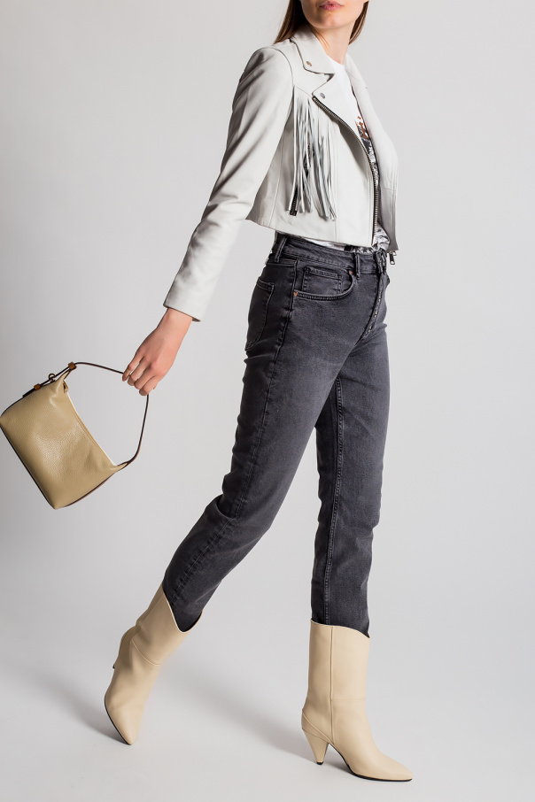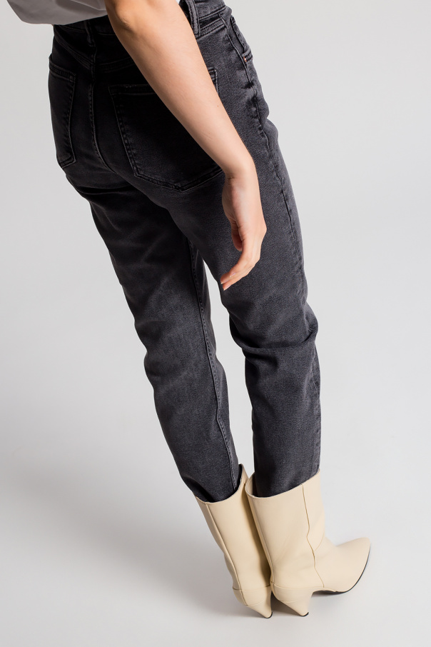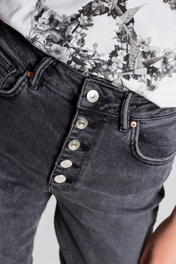 Grey ‘Jules’ jeans from AllSaints. Crafted from stretch cotton, this pair features button fastenings, classic five pockets and tapered legs with frayed hems.