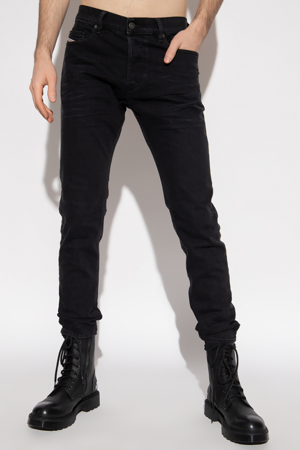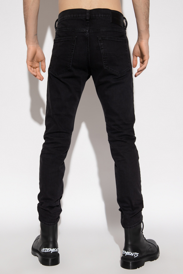Dark grey ‘D-Luster’ slim-fit jeans from Diesel. Falling with tapered legs, this pair features button fastenings, classic five pockets and logo patches on the front and back.