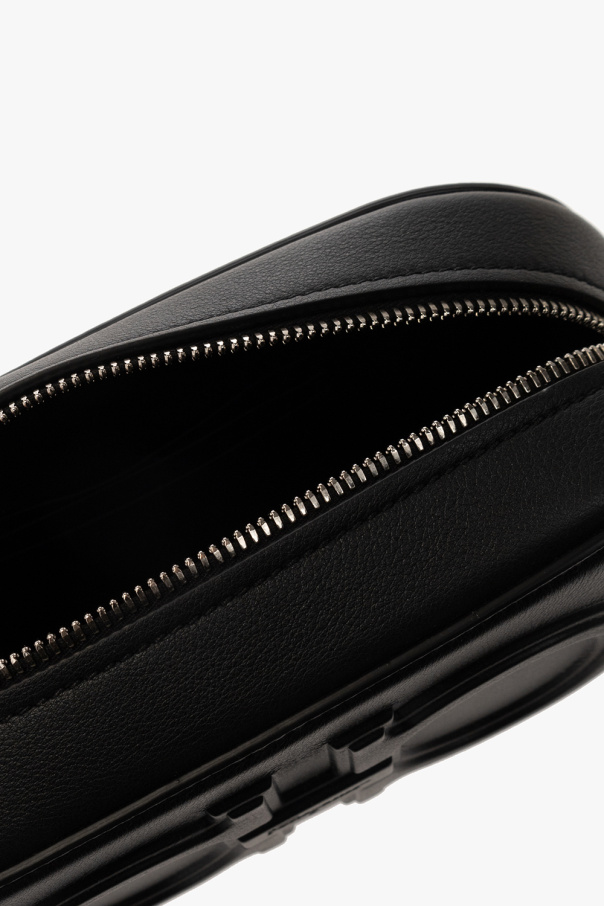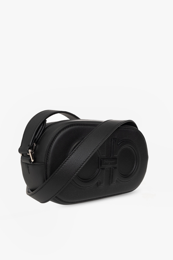 Black ‘Double Gancio’ shoulder bag from FERRAGAMO. Crafted from calf leather, this design fastens with a zipper and showcases a logo-shaped application, an adjustable shoulder strap, silver-tone metal hardware and one internal compartment with three card slots.