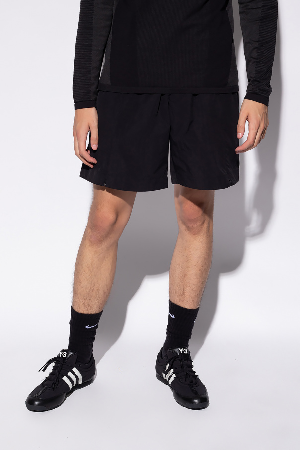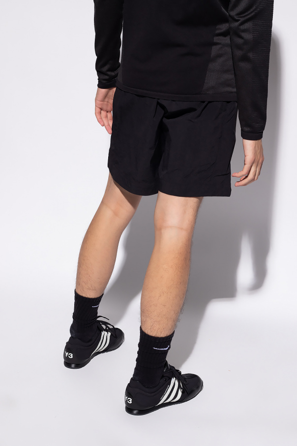 Black track shorts from Y-3 Yohji Yamamoto. Spun from recycled yarns, this pair features an elasticated waistband with a drawstring fastening, two zipped pockets accompanied by perforated panels with hidden zippers on the front and one zip pocket on the back.
