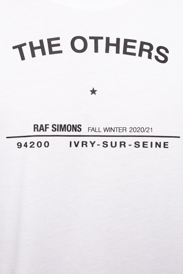 White crewneck T-shirt from Raf Simons. Crafted from cotton, this short sleeve design is decorated with a black print on the front and back.