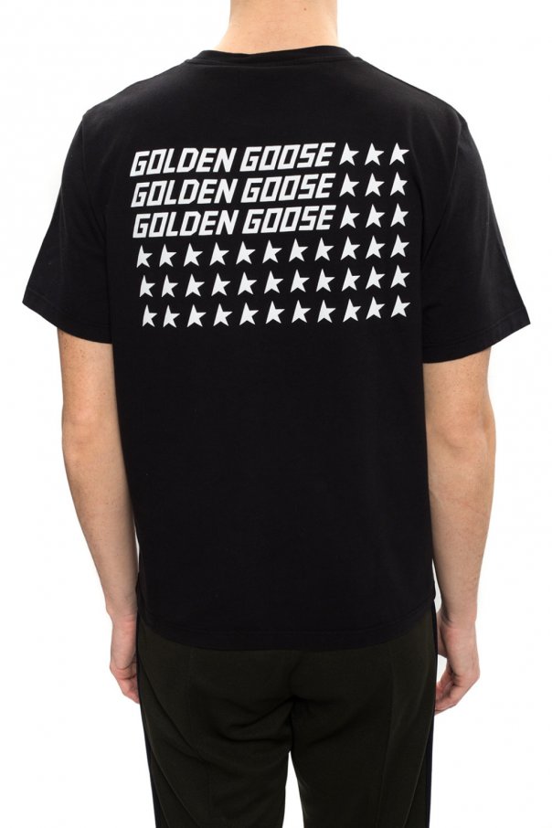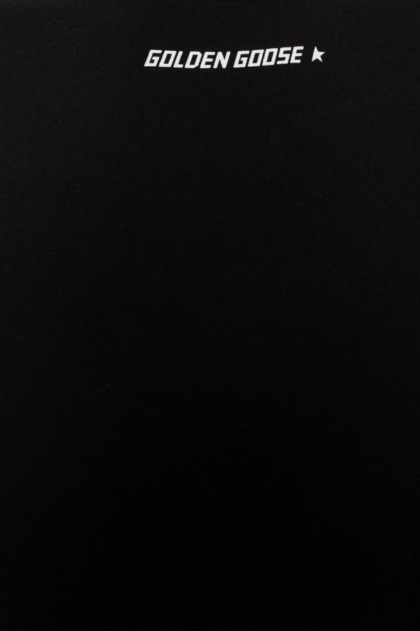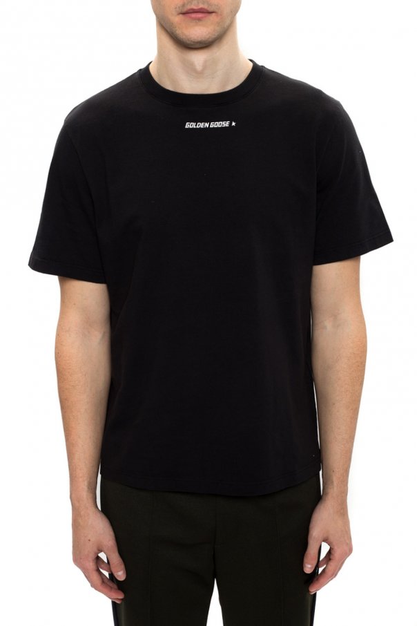 Black crewneck T-shirt from Golden Goose. Made of cotton. Features white brand\'s logo printed on both front and back.