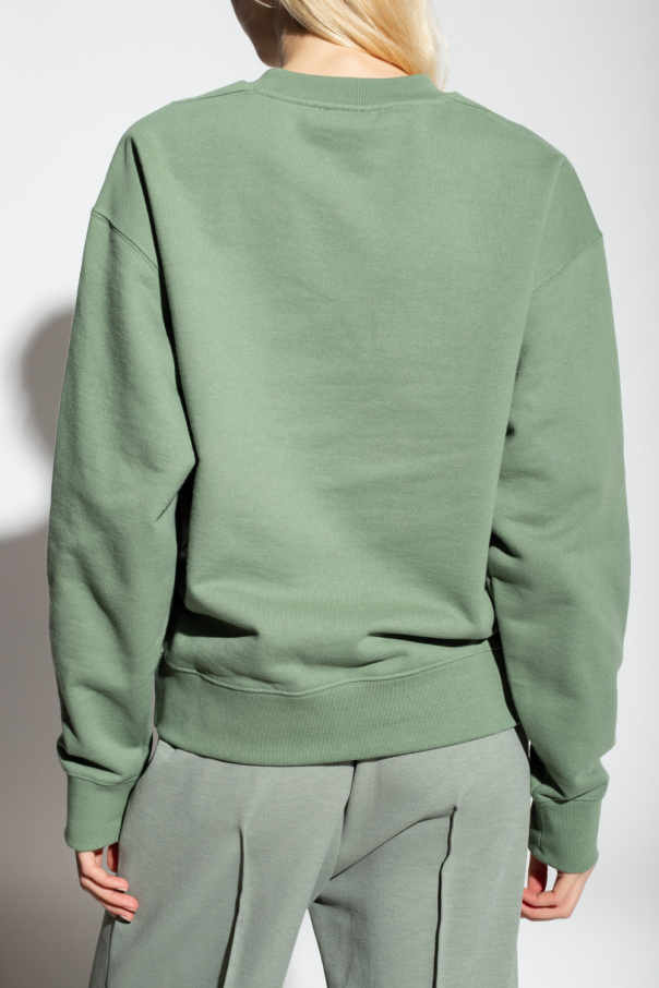 Greenish grey crewneck sweatshirt from Jil Sander+. Made of cotton, this long sleeve design features a logo patch and ribbed edges.
