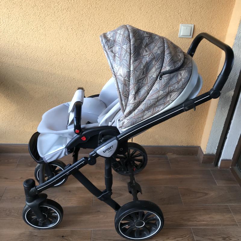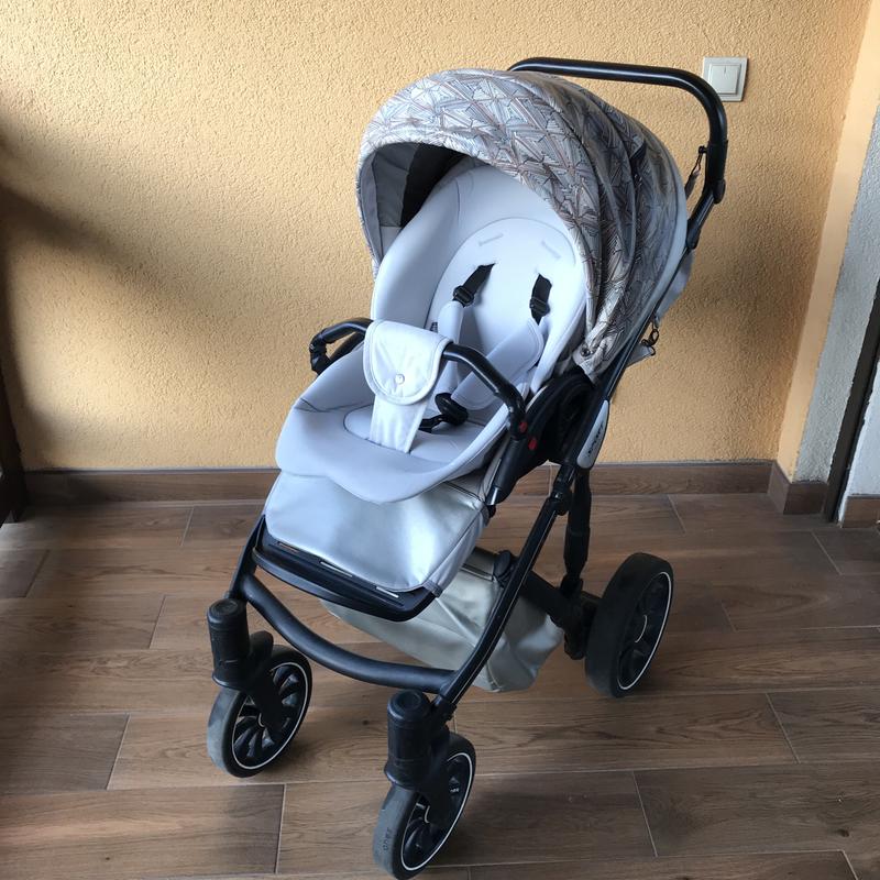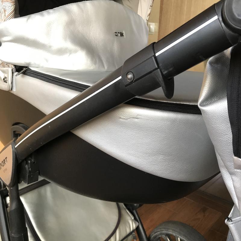 Отличное механическое состояние. Кожаная поверхность легко моется. Полный комплект: люлька, прогулочный блок, сумка, москитная сетка и дождевик