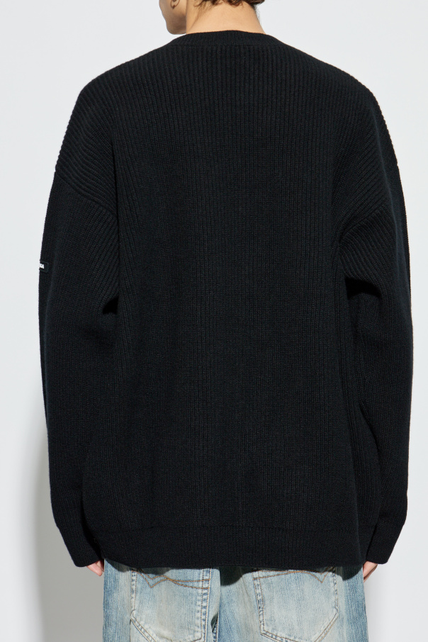 Indulge in the epitome of luxury with the Balenciaga Wool Sweater. This exquisite piece, crafted from thick, premium wool, embodies the perfect blend of comfort and sophistication. The classic, straight cut with long sleeves and a round neckline offers an effortlessly chic style, while the oversize fit ensures a relaxed and comfortable wear. The sweater features a dense, ribbed knit pattern, characteristic of heavy knit sweaters, providing warmth and texture that is ideal for cooler days. The garment is adorned with a distinctive black rectangular patch on the left sleeve, showcasing the white Balenciaga logo, adding a touch of elegance and brand recognition. Presented in versatile black, this sweater is a timeless addition to any wardrobe, exuding both modernity and classic appeal. The renowned Balenciaga label, founded by visionary designer Cristóbal Balenciaga and now led by Demna Gvasalia, continues to merge exquisite craftsmanship with contemporary fashion trends. Why You Should Buy This Product Expertly crafted from 100% premium wool. Classic and versatile black color. Stylish oversize fit for ultimate comfort. Distinctive Balenciaga logo patch. Perfect for cooler weather with its heavy knit design. Renowned brand with a rich heritage in haute couture.