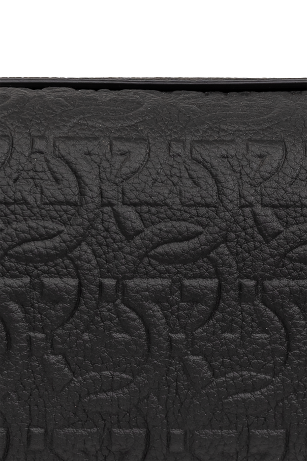 Introducing the epitome of sophistication and utility - the FERRAGAMO Leather Cosmetic Bag. Crafted from the finest 100% calf leather, this exquisite piece marries luxury with practicality. Its black hue ensures a timeless appeal, making it a versatile companion for any ensemble or occasion. The bag\'s exterior is adorned with a distinctive monogram pattern, meticulously embossed to offer not just an elegant texture but also a subtle nod to the esteemed FERRAGAMO brand. This feature, coupled with its rectangular shape and gently rounded edges, renders the cosmetic bag a statement of refined taste. Designed for effortless portability, it includes a small, semi-circular handle on the side, alongside a dual-direction zipper that secures your essentials in style. The interior reveals a thoughtfully arranged space, consisting of a main compartment and a zippered pocket, all lined with a premium fabric that promises durability and protection for your belongings. Silver-toned metal accents add a final touch of glamour. Why Purchase This Product? Constructed with high-quality calf leather for lasting luxury. Features a unique, brand-identifying monogram pattern. Versatile and classic black color suitable for all occasions. Practical design with a handle for easy carrying. Secure storage with a dual-direction zipper and an additional internal zippered pocket. Elegant silver-toned hardware for a sophisticated finish.