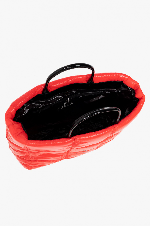 Red and black ‘Opportunity Large’ quilted shopper bag from Furla. Crafted from fabric with a gloss finish, this model features a carabiner hook, black logo print, two half-round handles and one internal compartment with two slip pockets and one zip pocket.