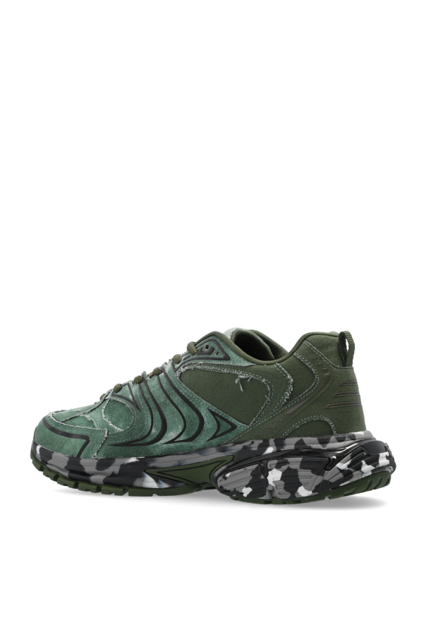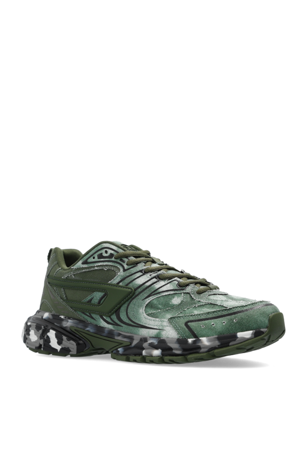 Green ‘SERENDIPITY PRO’ sneakers from Diesel. Made of canvas with a discolored and distressed effect, this lace-up pair features logo details as well as a multicolored rubber sole with a camo pattern.
