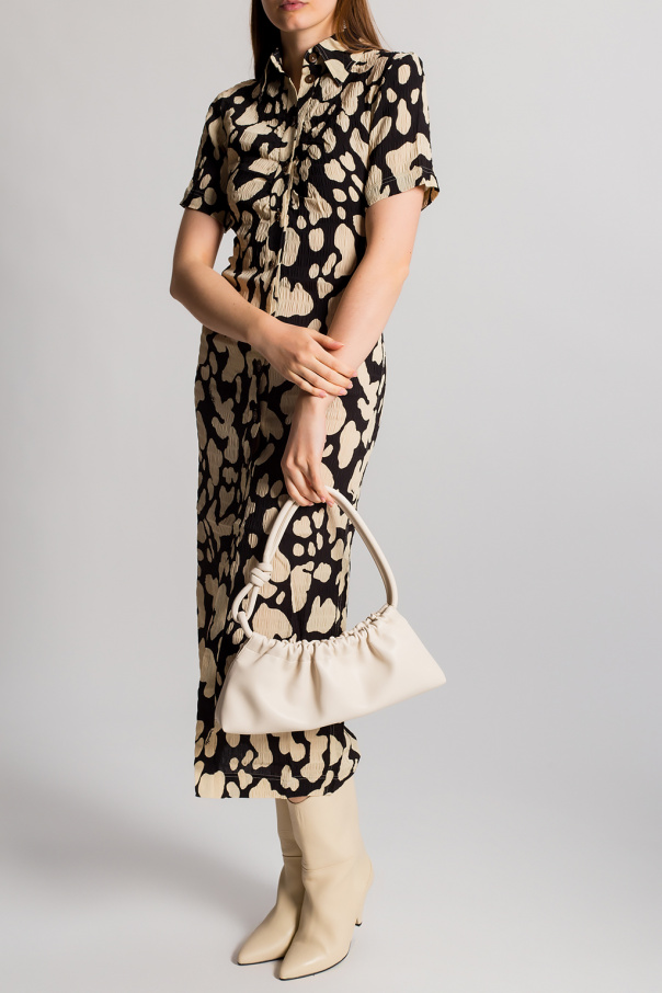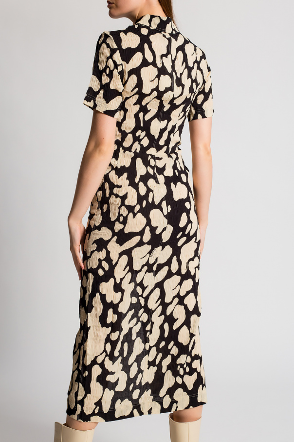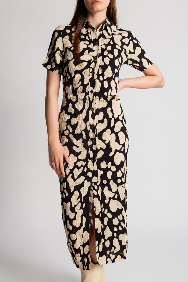 Black and cream dress from Nanushka. Fastened with buttons, this short sleeve design is decorated with a logo detail and gathers.