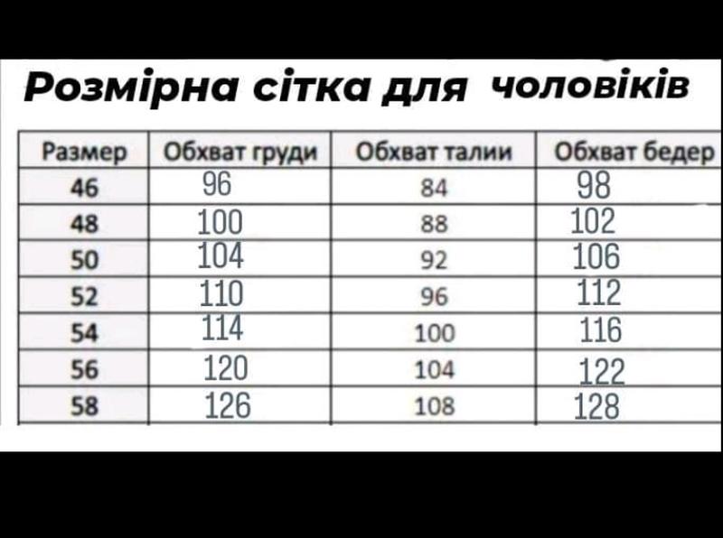 ◦ Розмірна сітка: 46, 48, 50, 52, 54