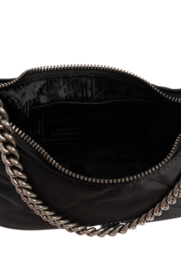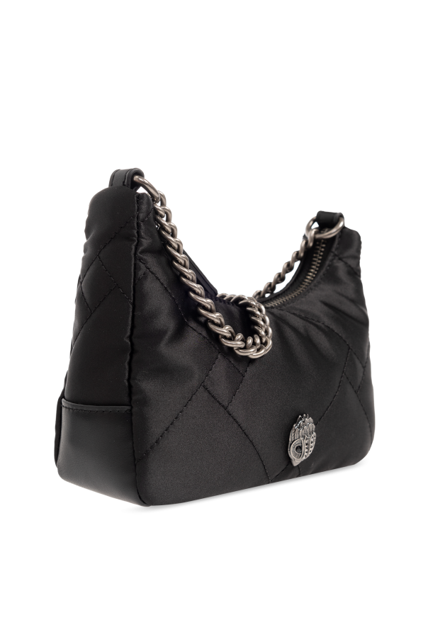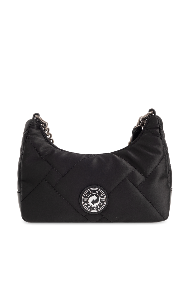 Black ‘Multi Cross Body Small’ quilted shoulder bag from Kurt Geiger. Made of recycled fabric and leather, this design secures via a zip and showcases the brand\'s signature eagle head plaque on the front, a logo patch on the back, a removable round pouch with a zip closure, a short chain, a detachable and adjustable shoulder strap, silver-tone metal elements and one internal compartment with a card slot.
