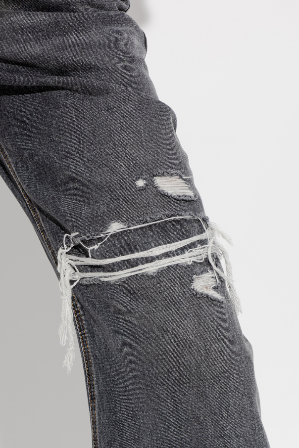 Dark grey ‘D-SIRE’ jeans from Diesel. Cut from cotton with a relaxed silhouette and straight legs, this pair features a dropped crotch, button fastenings, classic five pockets, logo patches on the front and back as well as a vintage effect and distressed detailing.