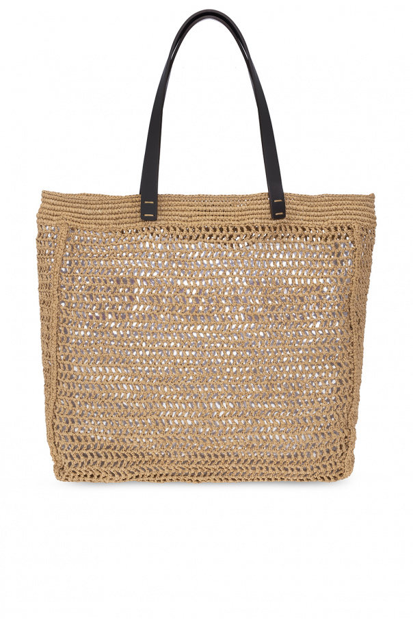 Beige shopper bag from Dsquared2. Crafted from woven raffia with a see-through finish, this design features red logo embroidery on the front, two half-round leather handles and one internal compartment.