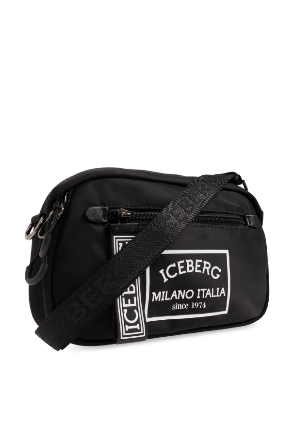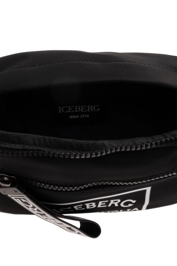 Black belt bag from Iceberg. Fastened with a zip, this design features a zip fastening, zipped front pocket, white logo print, detachable shoulder strap, silver-tone metal hardware and one internal compartment with one zip pocket.