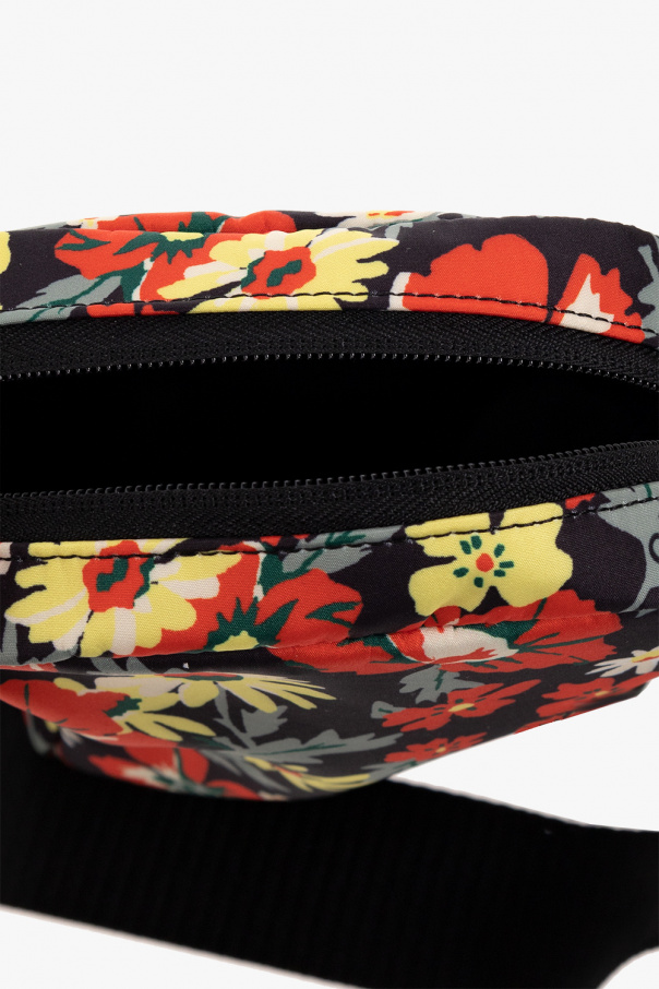 Multicoloured ‘Festival’ shoulder bag from Ganni. Crafted from recycled material, this design secures with a zipper and showcases a floral pattern accompanied by a logo patch, a zip pocket on the front, an adjustable shoulder strap and one internal compartment.