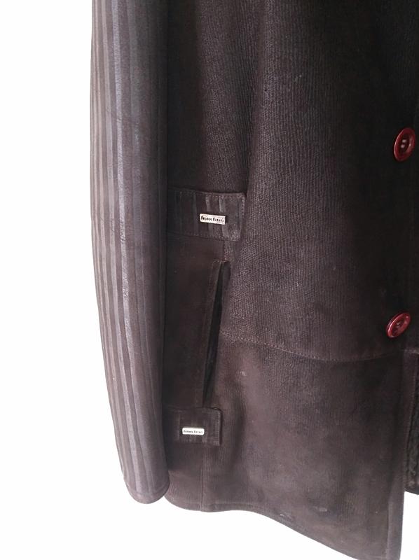 Дуже красива, брендова дублянка, Італія якість на вищому рівні, шкіра м'яка, всередині цегейка, тепла і стильна, колір темний шоколад сліди носіння мінімальні, була куплена у фірмовому магазині за дорого, фурнітура бренд логотипи все є, на жаль стала великою і займає місце в шафі ціна символічна для такої речі заміри :Довжина 80 см, рукав 68 см, груди 128 см, плечі 56 см стегна 124 см