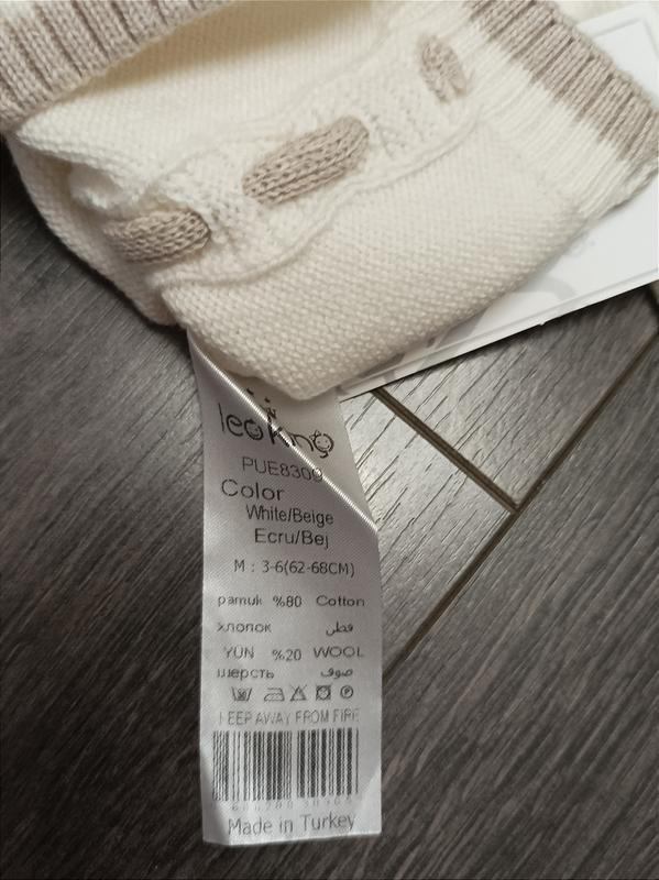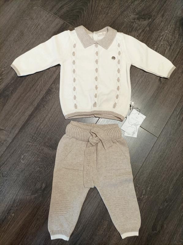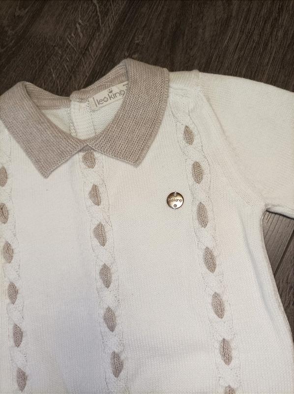 Дитячий в'язаний костюм з вовни та бавовни. Тонка в'язка. Позаду гудзики. Дуже м'який. Колір: беж/молоко. Виробник Туреччина. Люкс. Розміри: 3/6,6/9 місяців.