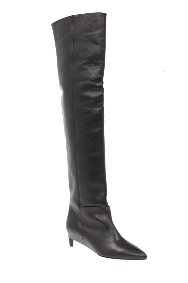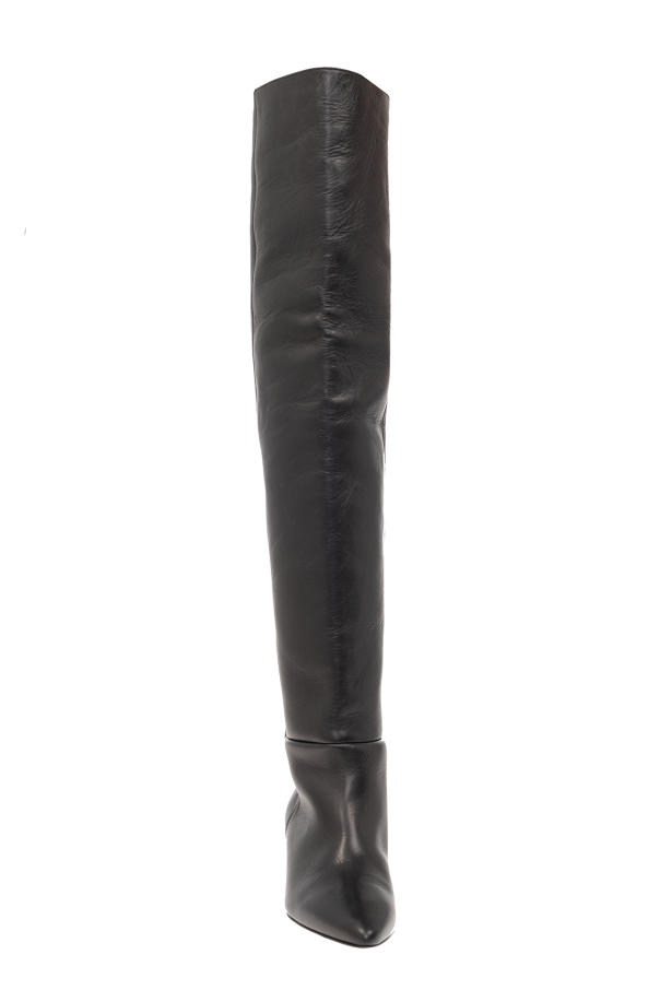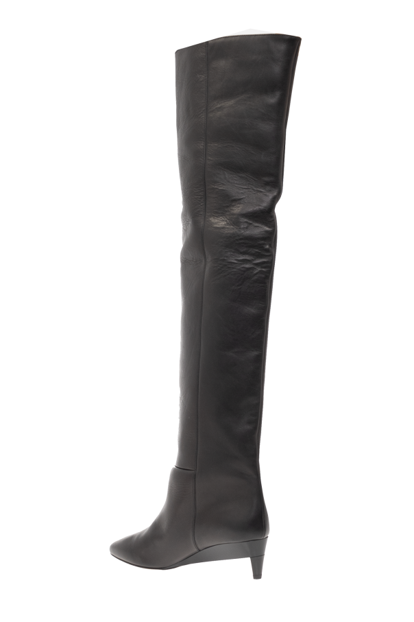 Black ‘Lisali’ heeled boots from Isabel Marant. Made of leather, this pair is set on a brown leather sole with decorative trimming.