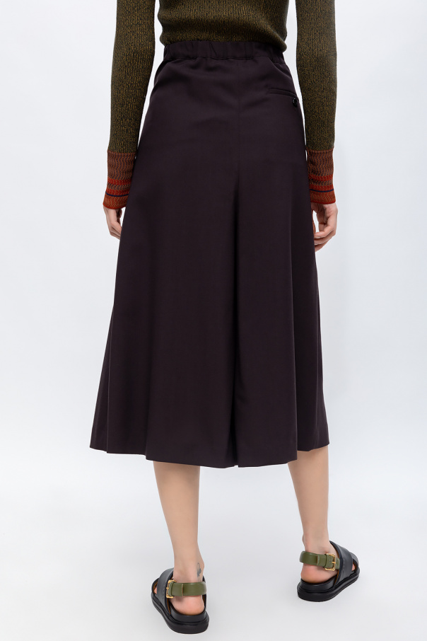 Brown pleated culottes from Marni. Made of wool, this pair is complete with an elastic waistband, two front pockets and two back pockets.