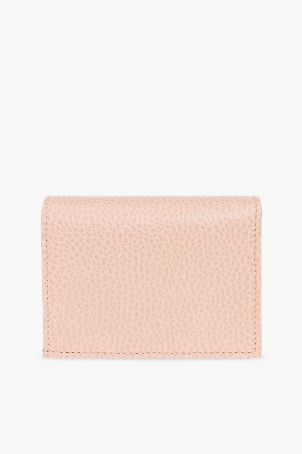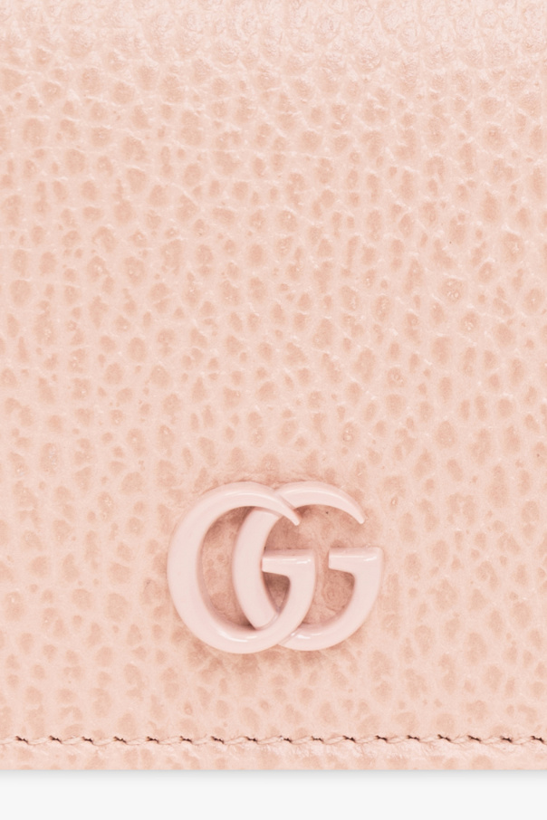 Pink wallet from Gucci. Crafted in grained leather, this item features a snap fastening, logo hardware on the front and one bill compartment, one zip coin pocket, two slip pockets and four card slots inside.
