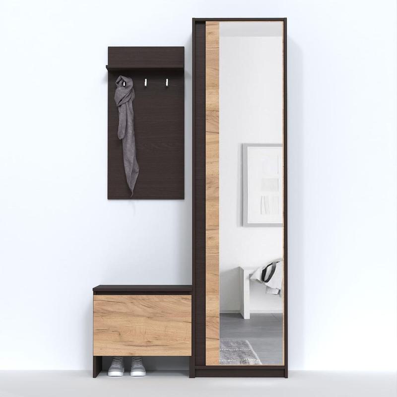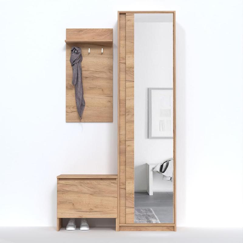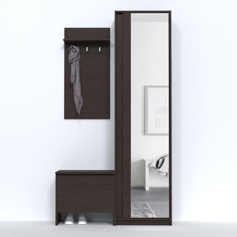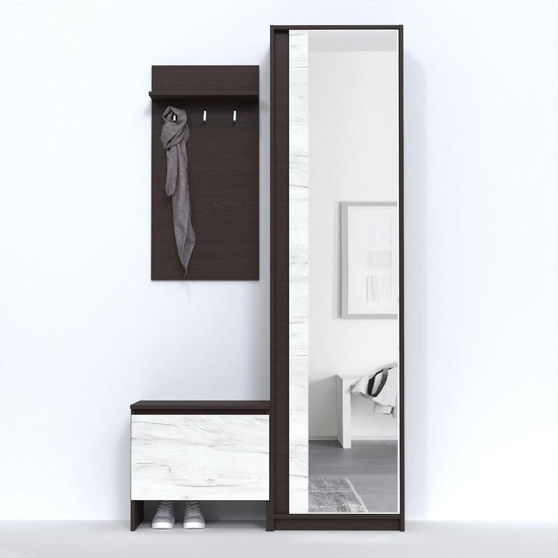 прихожей входит шкаф с зеркалом, тумба для обуви и открытая настенная вешалка