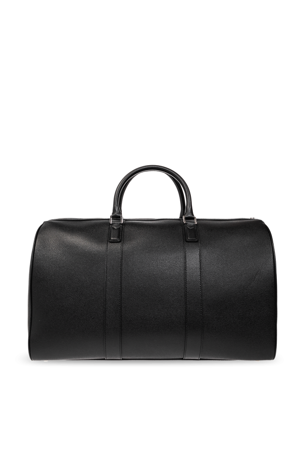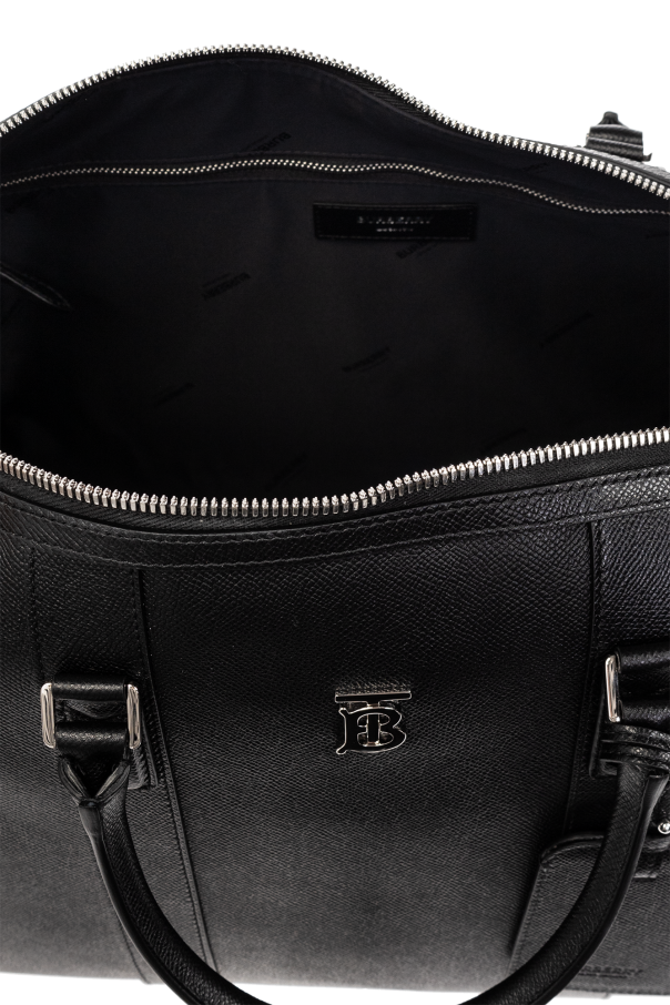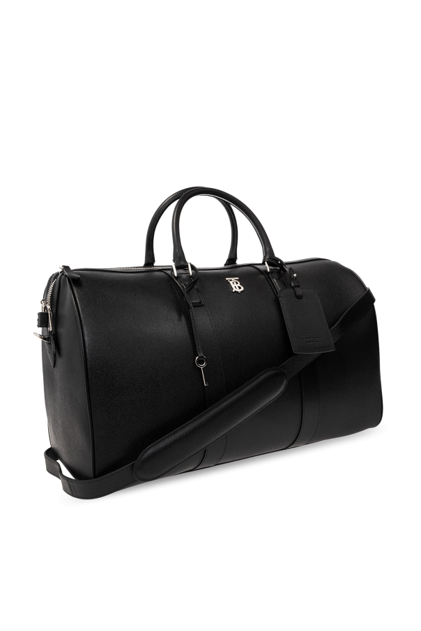 Black ‘Boston’ holdall bag from Burberry. Made of calf leather, this design fastens with a two-way zip and is complete with a padlock, detachable key charm, two half-round handles, detachable and adjustable shoulder strap, silver-tone metal hardware and one internal compartment with two slip pockets and one zip pocket.