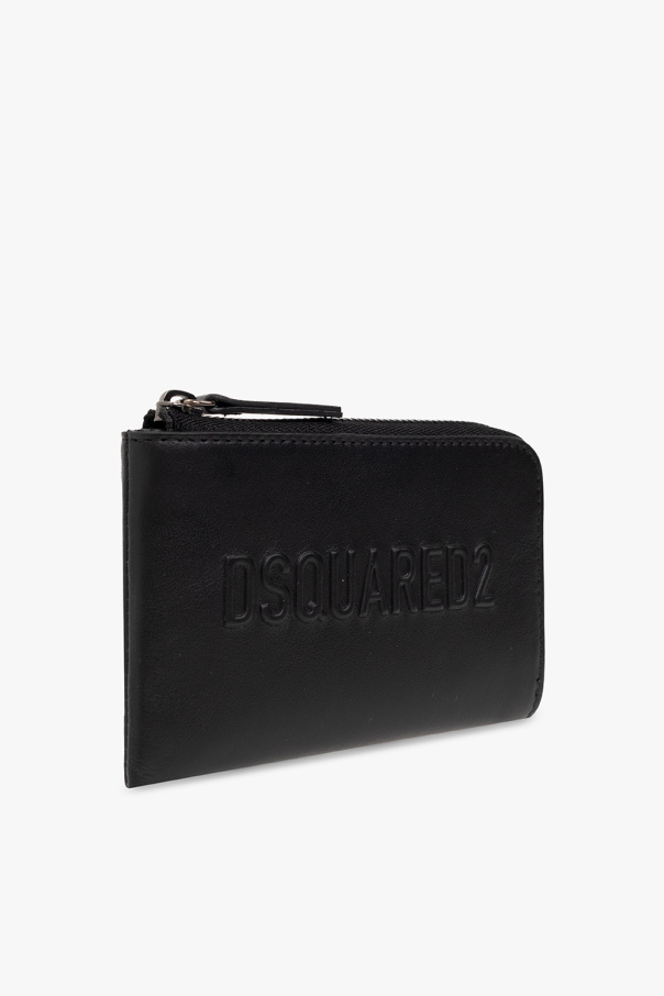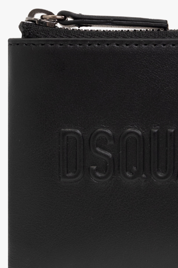 Black wallet from Dsquared2. Crafted from calf leather, this model fastens with a zip and is complete with a raised logo, two card slots at the back, silver-tone metal hardware and one internal compartment with four card slots.