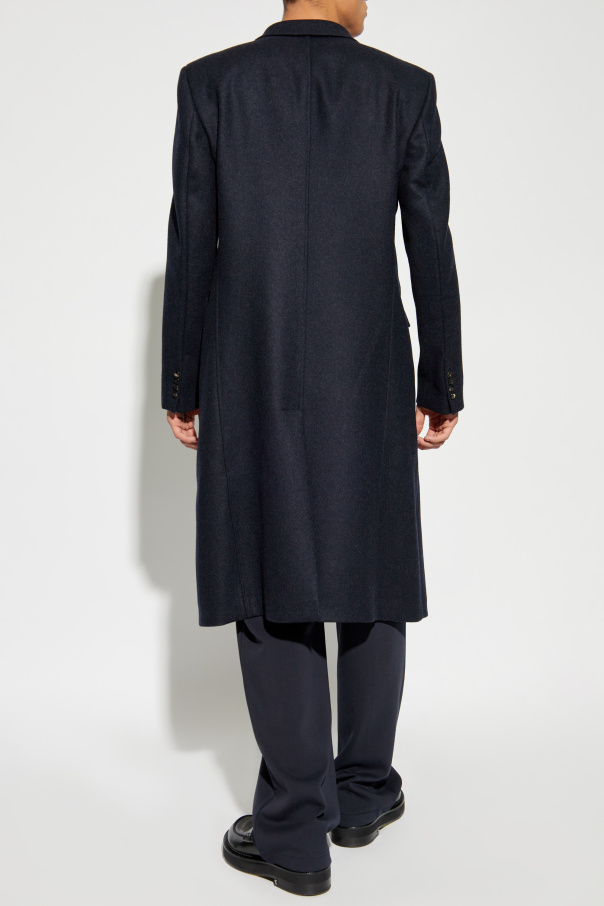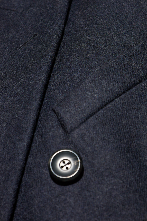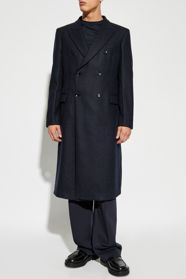 Introducing the Double-Breasted Coat by Emporio Armani, a quintessential piece of men\'s casualwear that exudes timeless elegance. This long coat, reaching the knees, showcases a classic double-breasted design with six meticulously placed buttons. Crafted from 100% Virgin Wool, the coat\'s smooth texture epitomizes the high-quality fabric synonymous with exclusive collections. The material ensures durability and sophistication, making it an impeccable choice for cooler days. Dark, subtly gleaming buttons enhance the coat\'s refined appearance, complemented by traditional lapels. The front features two flap pockets, blending functionality with aesthetic appeal, while the back maintains a clean, unembellished look, reinforcing its classic charm. The navy blue hue makes this coat a versatile wardrobe staple, effortlessly pairing with various outfits. Absent of visible logos or inscriptions, it subtly hints at the exclusivity and superior craftsmanship of Emporio Armani. Why Choose This Product? Timeless double-breasted design Premium 100% Virgin Wool construction Subtle, elegant details and high-quality buttons Functional and stylish front flap pockets Classic navy blue color for versatile styling Expertly crafted by the renowned Emporio Armani