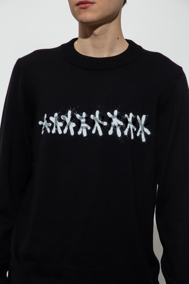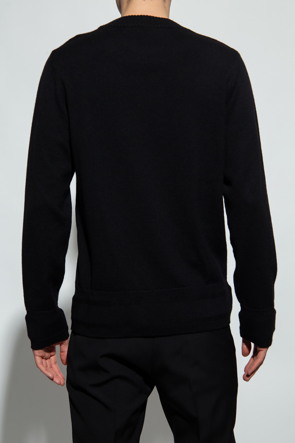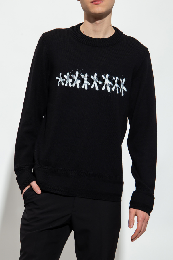 Black crewneck sweater from Givenchy x Chito. Made of wool, this style features a graphic print and a tactile logo detail in white and black on the front and ribbed trims on the collar, bottom hem and cuffs.