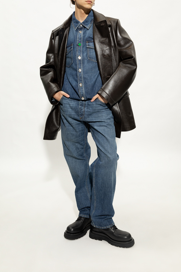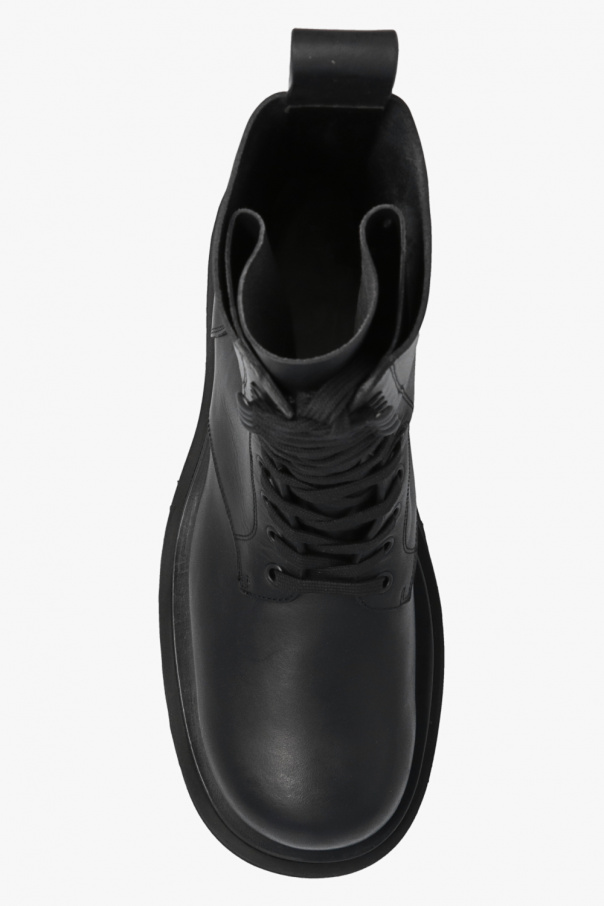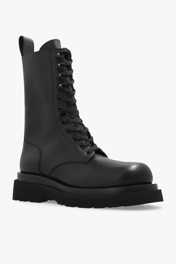 Black ‘Lug’ lace-up ankle boots with a black rubber sole from Bottega Veneta. Made of calf leather.
