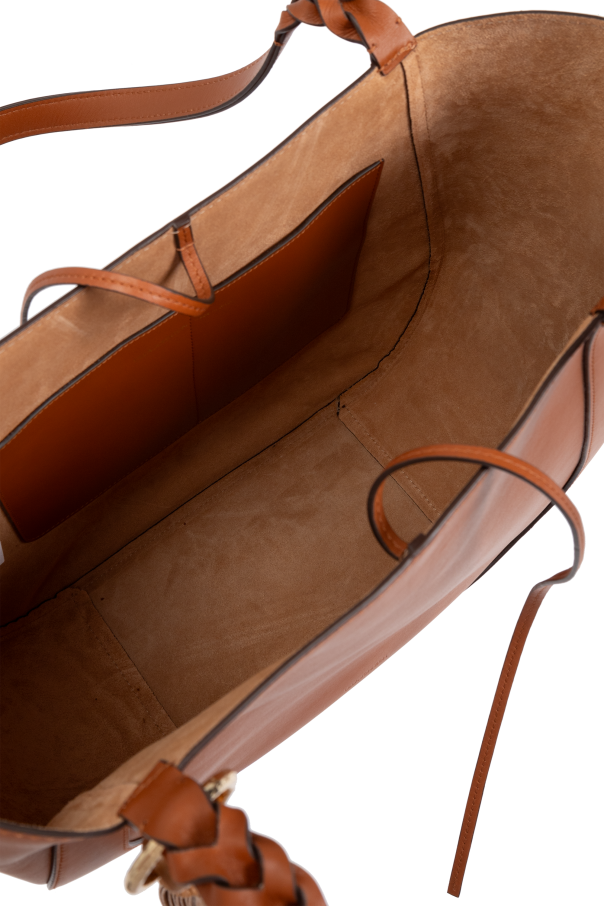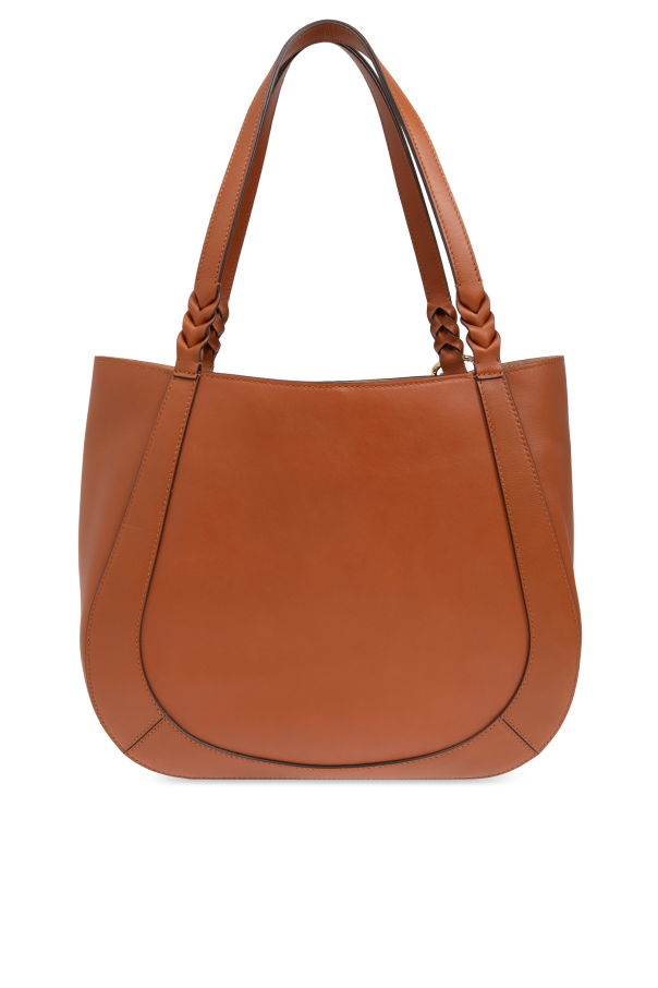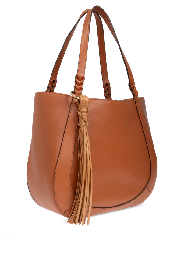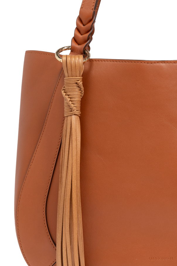 Introducing the Albers East West Shopper by renowned designer Ulla Johnson, a testament to minimalist elegance and functional design. Crafted from premium, smooth leather in a rich brown hue, this bag epitomizes high-quality craftsmanship and durability. The Albers East West is characterized by its rectangular shape with softly rounded bottom edges, lending it a contemporary and refined silhouette. Its main compartment is spacious, featuring two slip pockets for efficient organization of essentials, making it not only a statement piece but also a practical accessory for daily use. The bag\'s aesthetic is enhanced by a long, leather tassel, adding a touch of sophistication and flair. Additionally, its robust, intertwined handles not only contribute to the bag\'s stylish appearance but also signify enhanced durability. The presence of the Ulla Johnson logo subtly placed on the bag assures its authenticity and designer quality, making it a must-have addition to any discerning fashion enthusiast\'s collection. Why Purchase This Product? Expertly crafted from high-quality, smooth leather for lasting use. Features a contemporary design with a unique, rounded shape and elegant tassel detail. Spacious interior with organizational pockets for practicality and ease of use. Reinforced, intertwined handles for added strength and durability. Designer authenticity guaranteed with the Ulla Johnson logo.