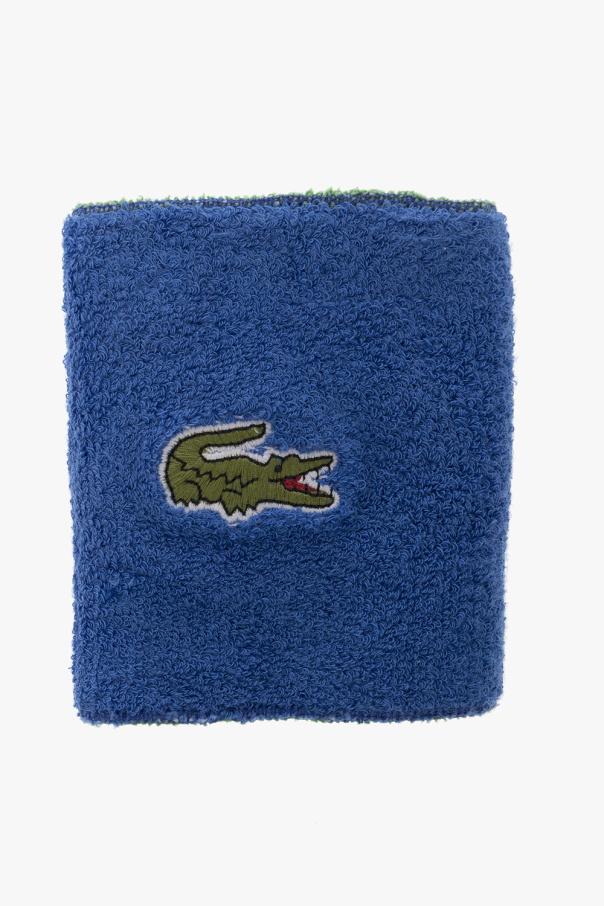 Set of 2 wristbands in blue and green from Lacoste. Each item is decorated with a logo patch.