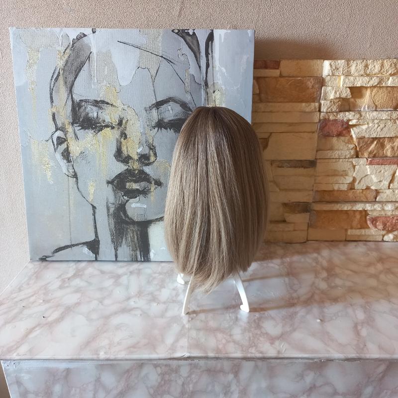 Парик высокого качества, выглядит натурально и очень красиво, от своих волос не отличить. Матова, без дешевого штучного блиску! Можно стричь, мыть в шампуне, укладывать, термостойкая. Регулируемая шапочка, имитация кожи головы. Длина 30см.