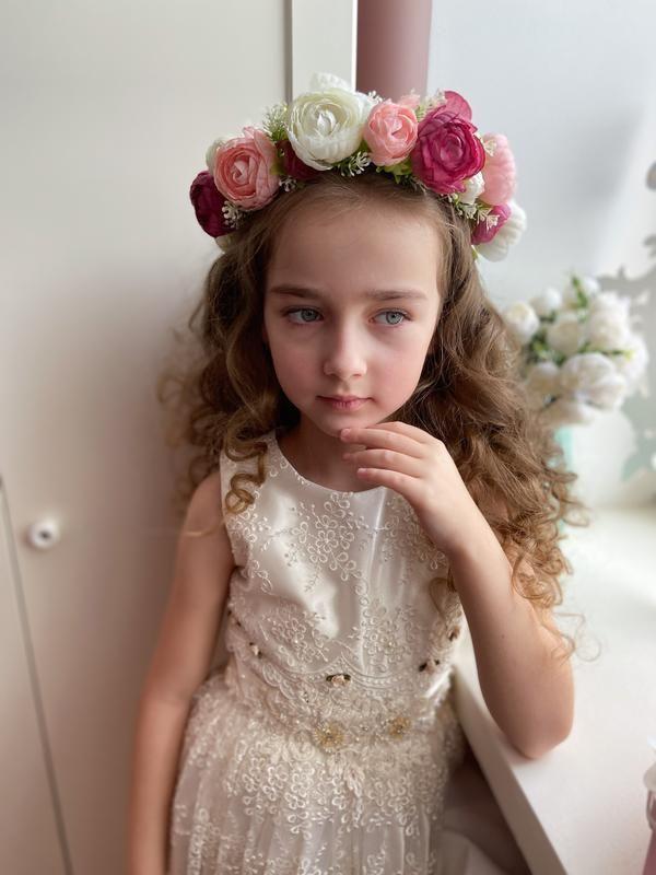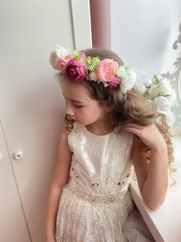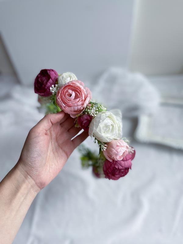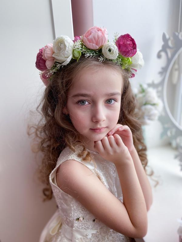 Нежный венок создан кремово-малиново-персиковыми цветами. Цветы использованы преміюм класса. Приближенные к натуральным (Производитель Польша).Венке присутствует пион-материал ткань, Зелень-пластик. Венчик обмотанный флорестичною лентой. Размер регулируется лентой. Подходит ребенку, так взрослому человеку. Подарите эмоции и красоту себе или близкому человеку. Венчик подчеркнет Вашу особливіть и невероятную красоту.