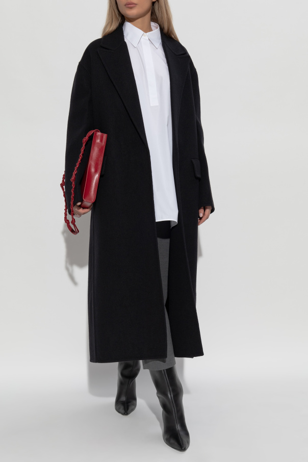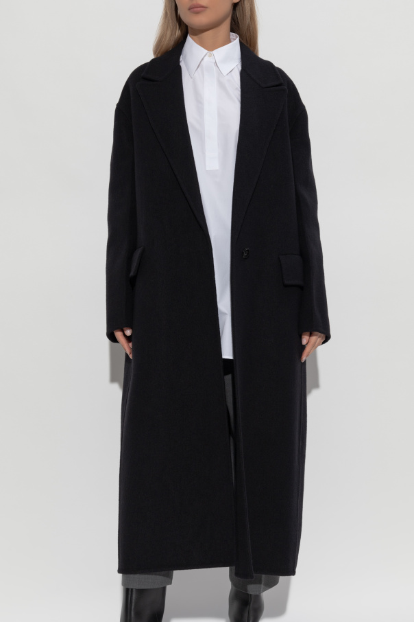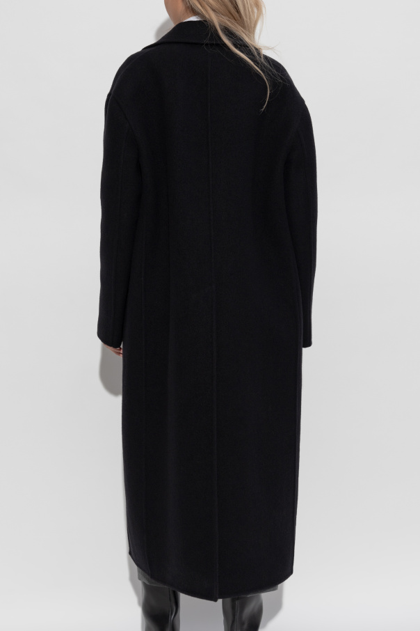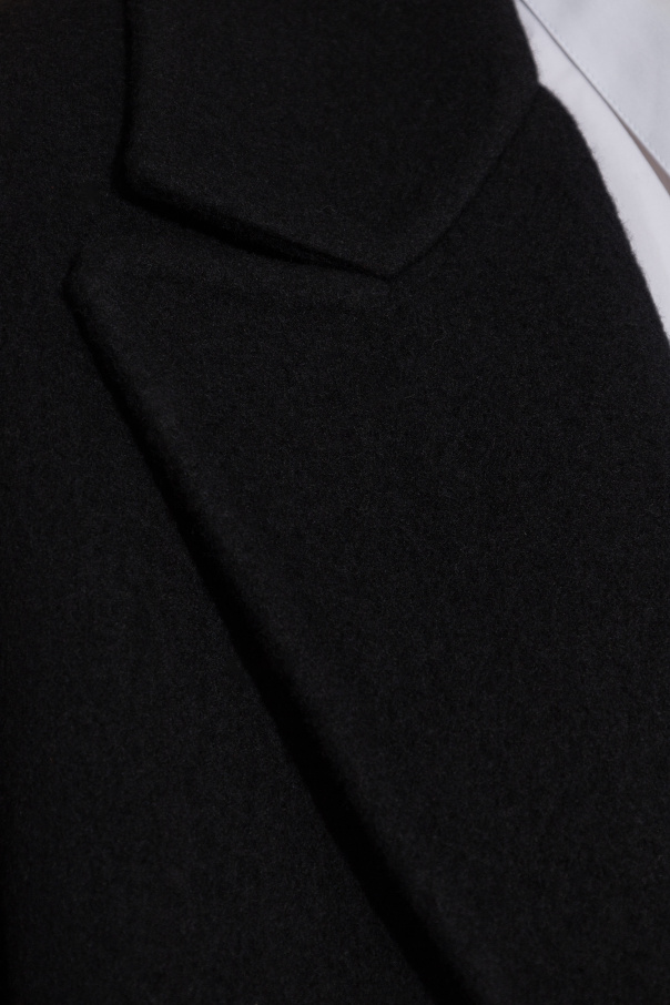 Introducing the Wool Coat by esteemed designer Jil Sander, a paragon of sartorial sophistication and minimalistic elegance. Crafted from premium wool, this coat exudes warmth and comfort, making it a quintessential addition to any discerning wardrobe. This coat features a long silhouette that gracefully extends below the knees, accentuated by large lapels that impart a formal flair. The design is characterized by its sleek, minimalist aesthetic, with a focus on clean lines and a buttoned closure that remains discreetly concealed. With its four pockets—two side flap pockets and two additional hidden ones—this coat seamlessly blends utility with style. The deep black hue ensures its versatility and timeless appeal, making it suitable for a myriad of formal occasions. Why Choose This Product? Exquisite craftsmanship by renowned designer Jil Sander. High-quality wool for ultimate warmth and comfort. Elegant and versatile black color. Practical design with four spacious pockets.