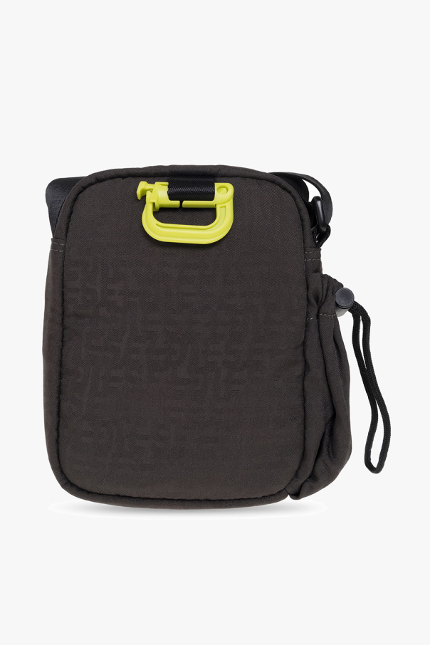 Black ‘UTLT‘ shoulder bag from Diesel. Embellished with a monogram pattern, this design features a zip fastening, a velcro pocket on the front, a shoulder strap, black metal hardware and one internal compartment.