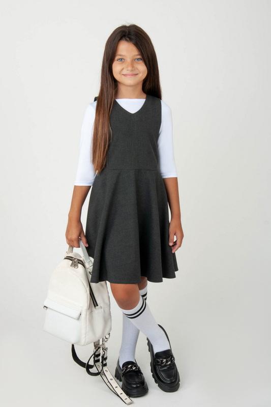 Школьный сарафан смотрится модно и стильно. Этот сарафан отлично подойдет как на каждый день, так и для торжеств. Школьный сарафан выполнен из полотна "Костюмка", сзади застегивается на молнию.