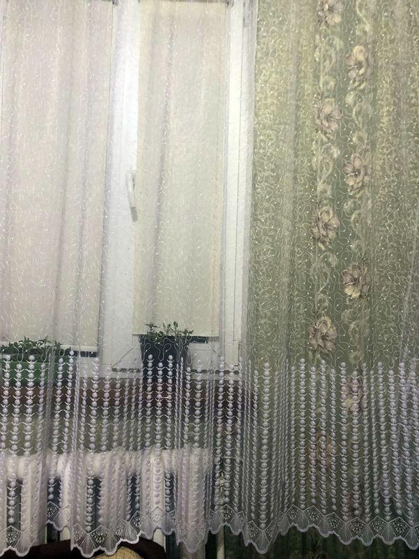 Тюль фатиновая белого цвета с вышивкой и люрексом нежного фиолетового оттенка. Высота 200см, ширина 300см. Пришито на тесьму под крючки.