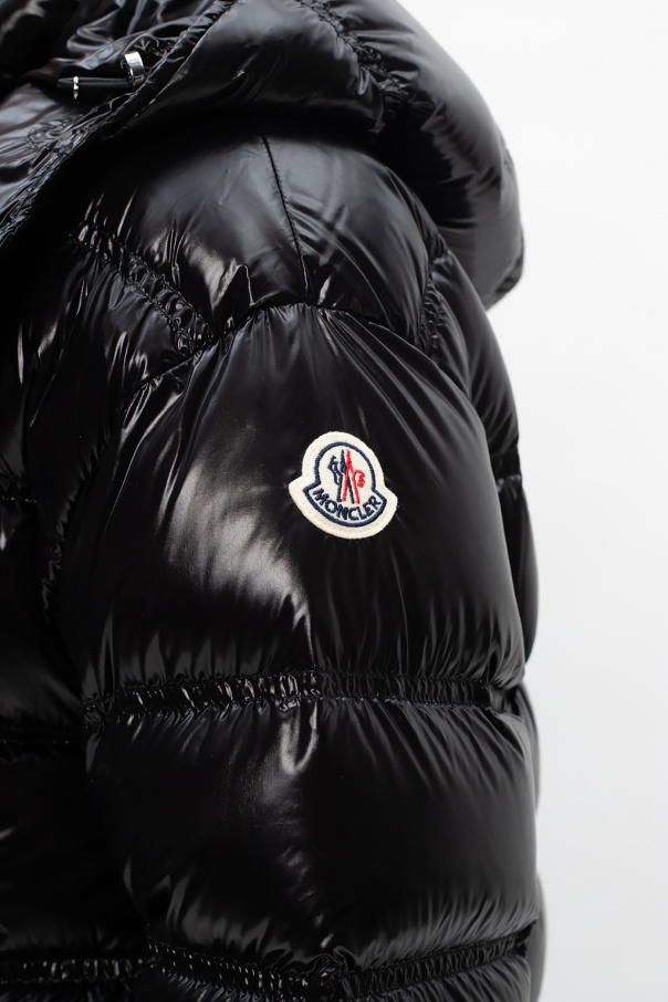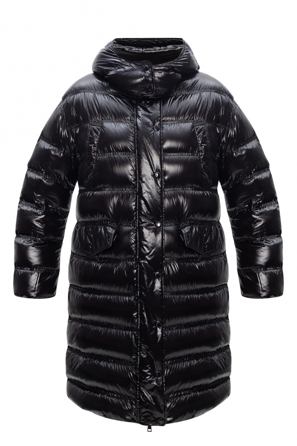 Black ‘Coche’ quilted coat from Moncler. Filled with goose down, this design fastens via two-way zip and snap fastenings and employs detachable hood and four snap-fastened pockets on the front, including two flapped ones.