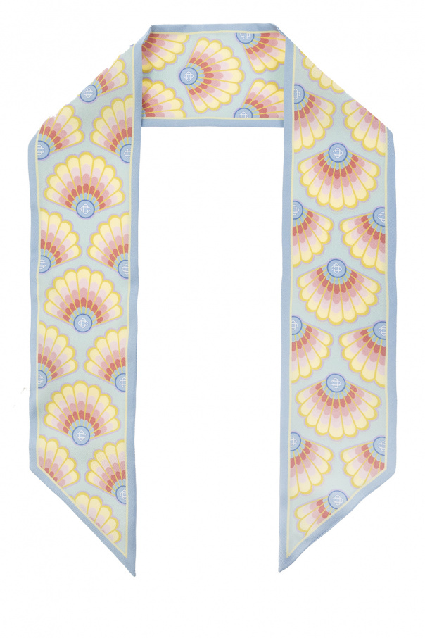 Light blue neckerchief from Casablanca. Made of silk, this item showcases a colourful pastel monogram pattern with a shell motif inspired by the postmodern Memphis movement.