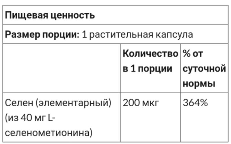 - Селен (элементарный) (из 20/40 мг L-селенометионина) 100 мкг/200 мкг.