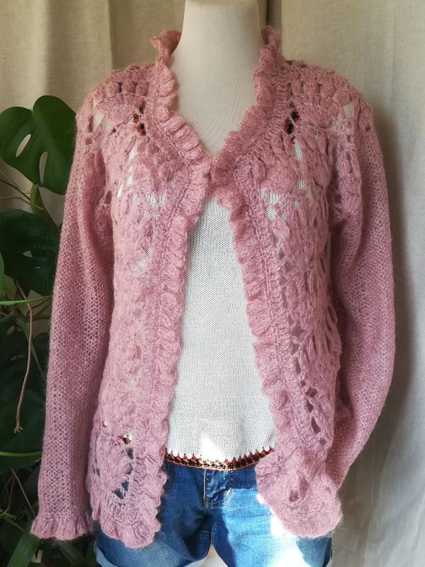 Женская ажурная кофта из мохера. Красивого оттенка "античный розовый" (пыльная роза.