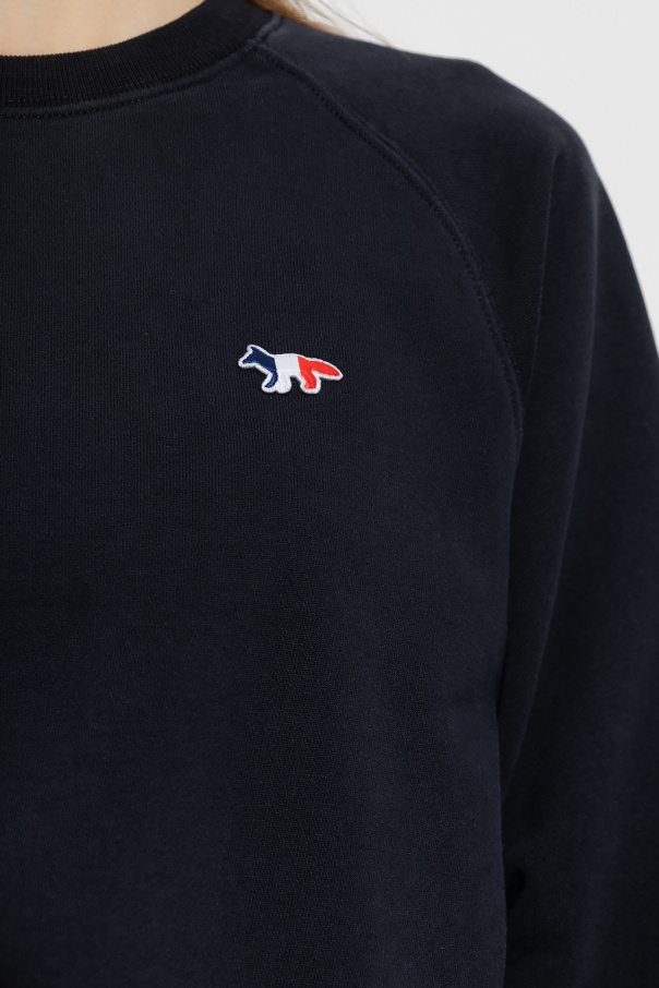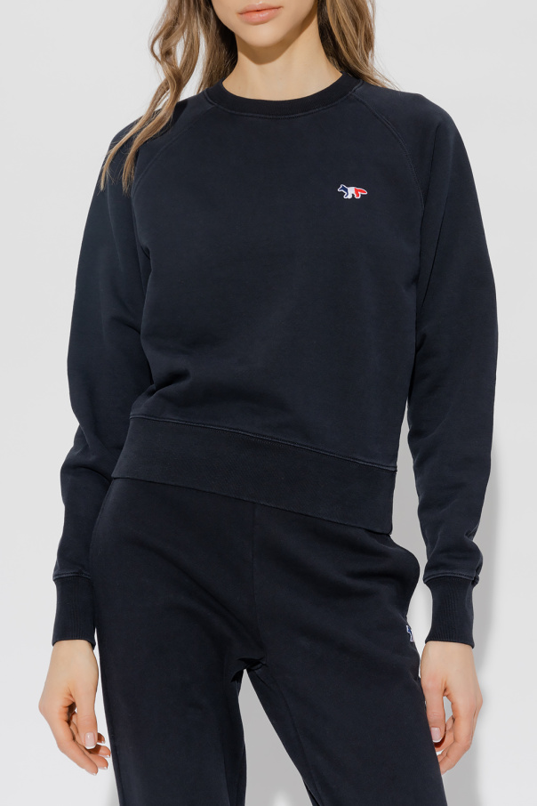 Black crewneck sweatshirt from Maison Kitsune. Made of cotton, this style features a logo patch, long sleeves and ribbed trims on the edges.