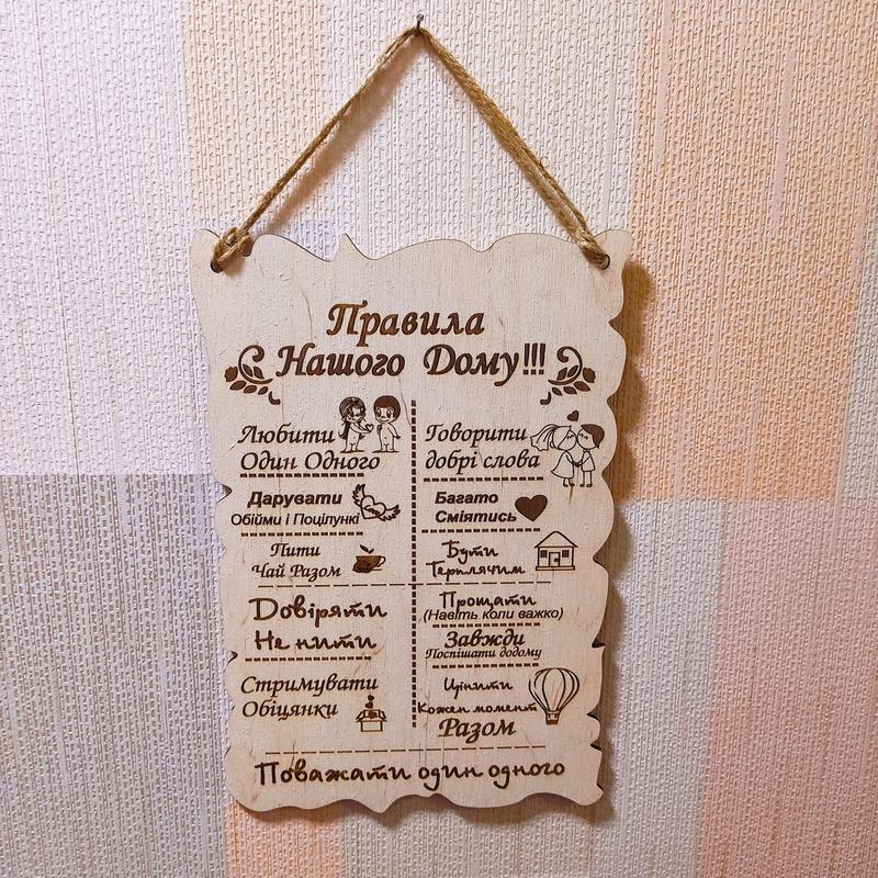 Предлагаем Вашему вниманию деревяную табличку "Правила нашого дому", которая