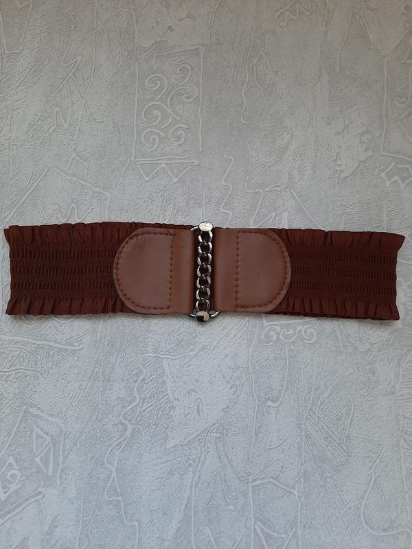 Пояс резинка коричневого кольору з оригінальною металічною застібкою. Думаю підійде і для верхнього одягу.