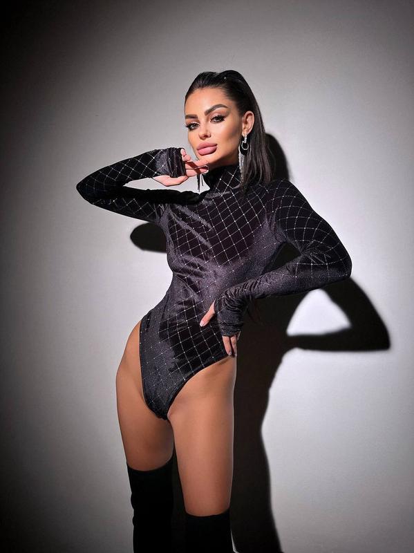 Сияющее бархатное боди-гольф с геометрическим принтом