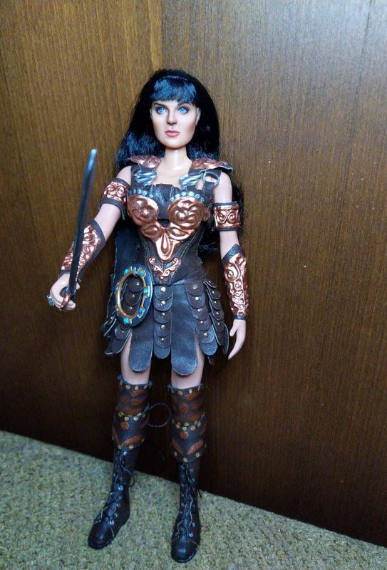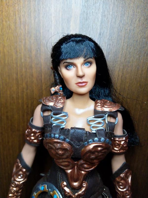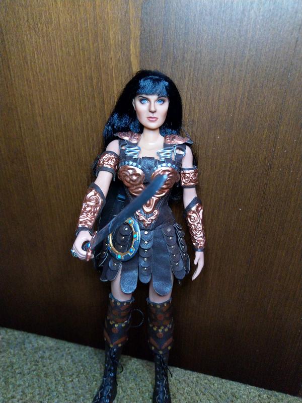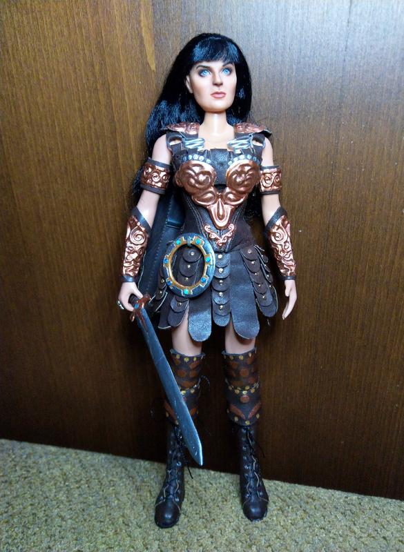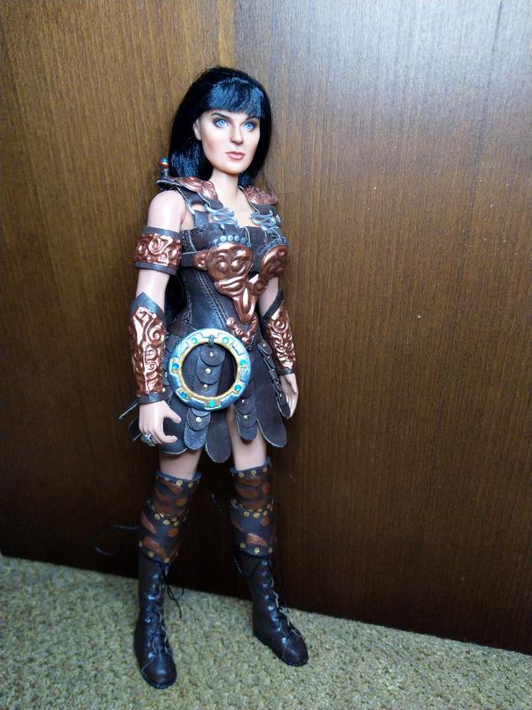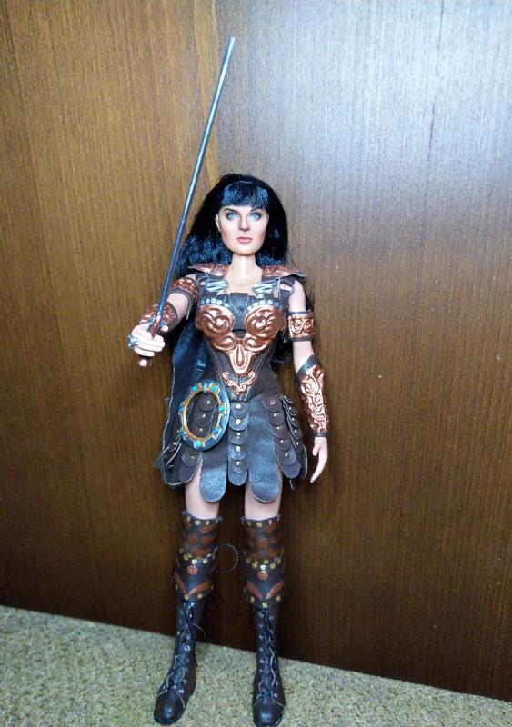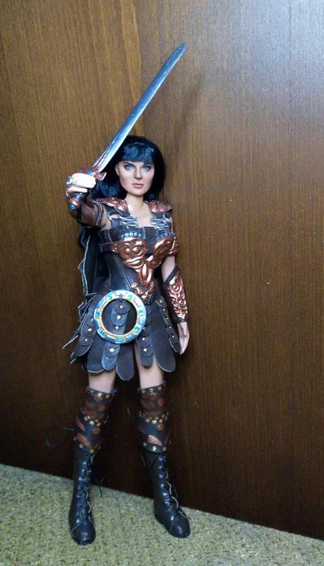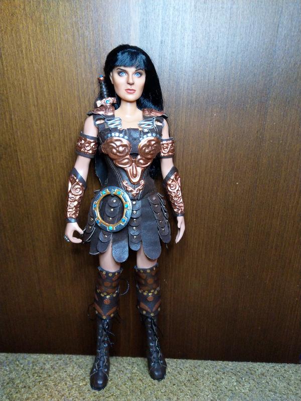 Эксклюзивная коллекционная кукла ООАК в образе воинственной принцессы-амазонки Ксены. Сделана по всем правилам. Работа проделана колоссальная. Аутфит и аксессуары изготовлены полностью вручную: одежда и обувь из натуральной кожи, доспехи из металла, меч и шакрам (или чакра) — вылеплены из специального материала и раскрашены. Кукла не для игры — для коллекции, витринного хранения.