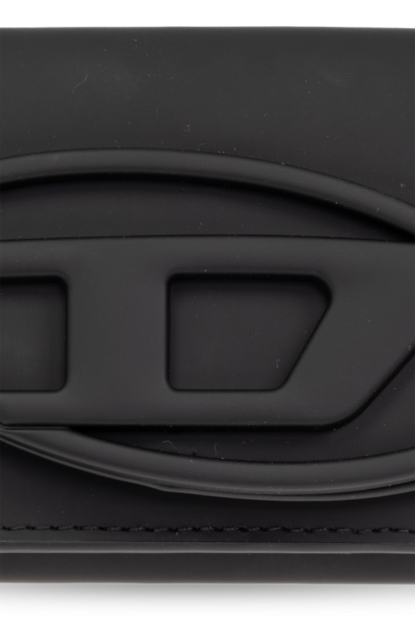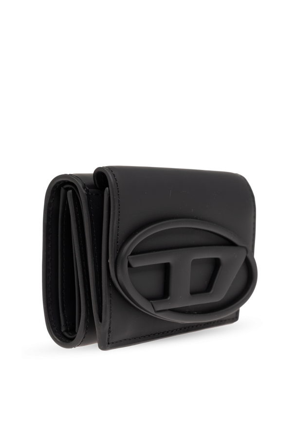Black ‘1DR’ wallet from Diesel. Made of leather, this item features a snap closure, logo detail and a snap-fastened coin pocket as well as one bill compartment with two card slots.