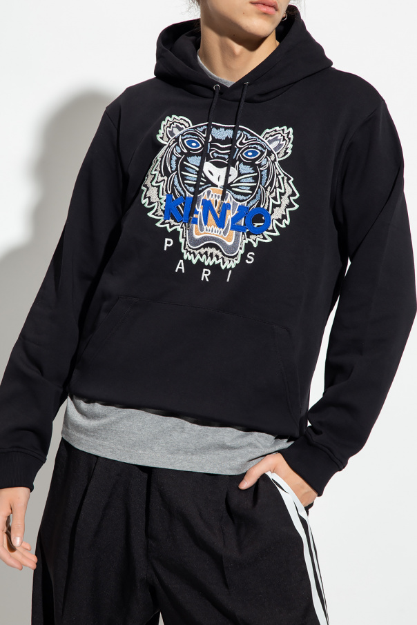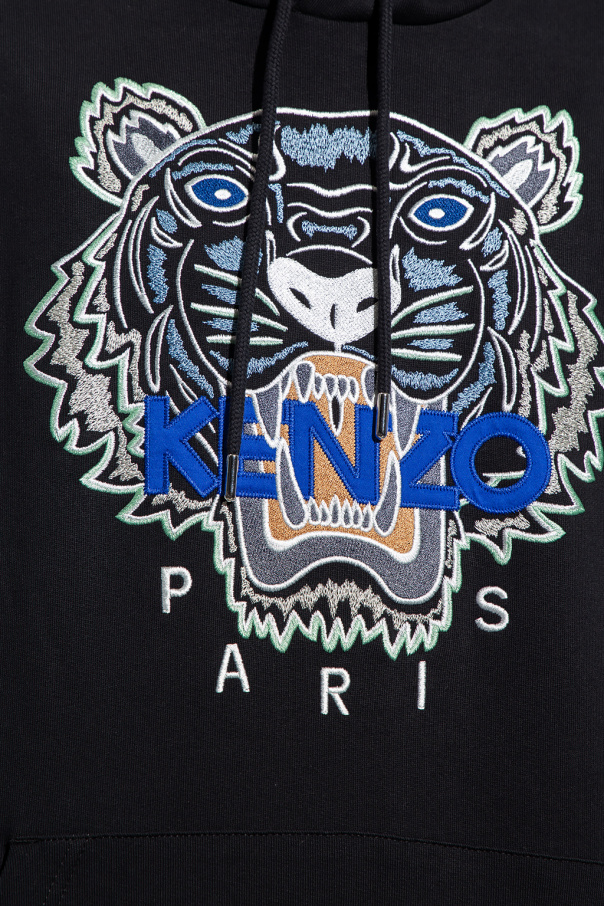 Black hoodie from Kenzo. Made of cotton, this garment features an embroidered logo pattern, drawstring hood, slip pocket and ribbed trims at the hem and cuffs.