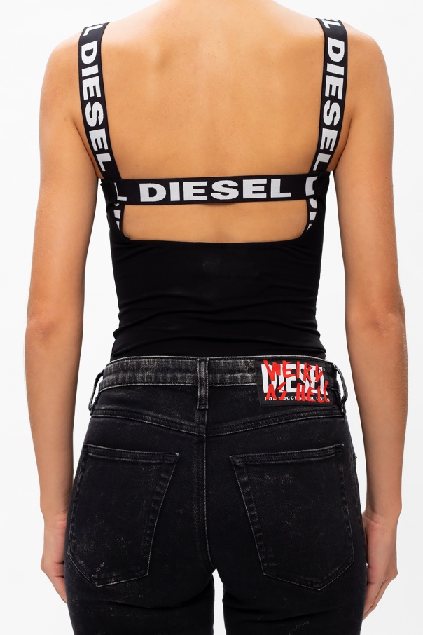 Black body from Diesel. Crafted from cotton, this round neck design features a black and white logo embroidery.